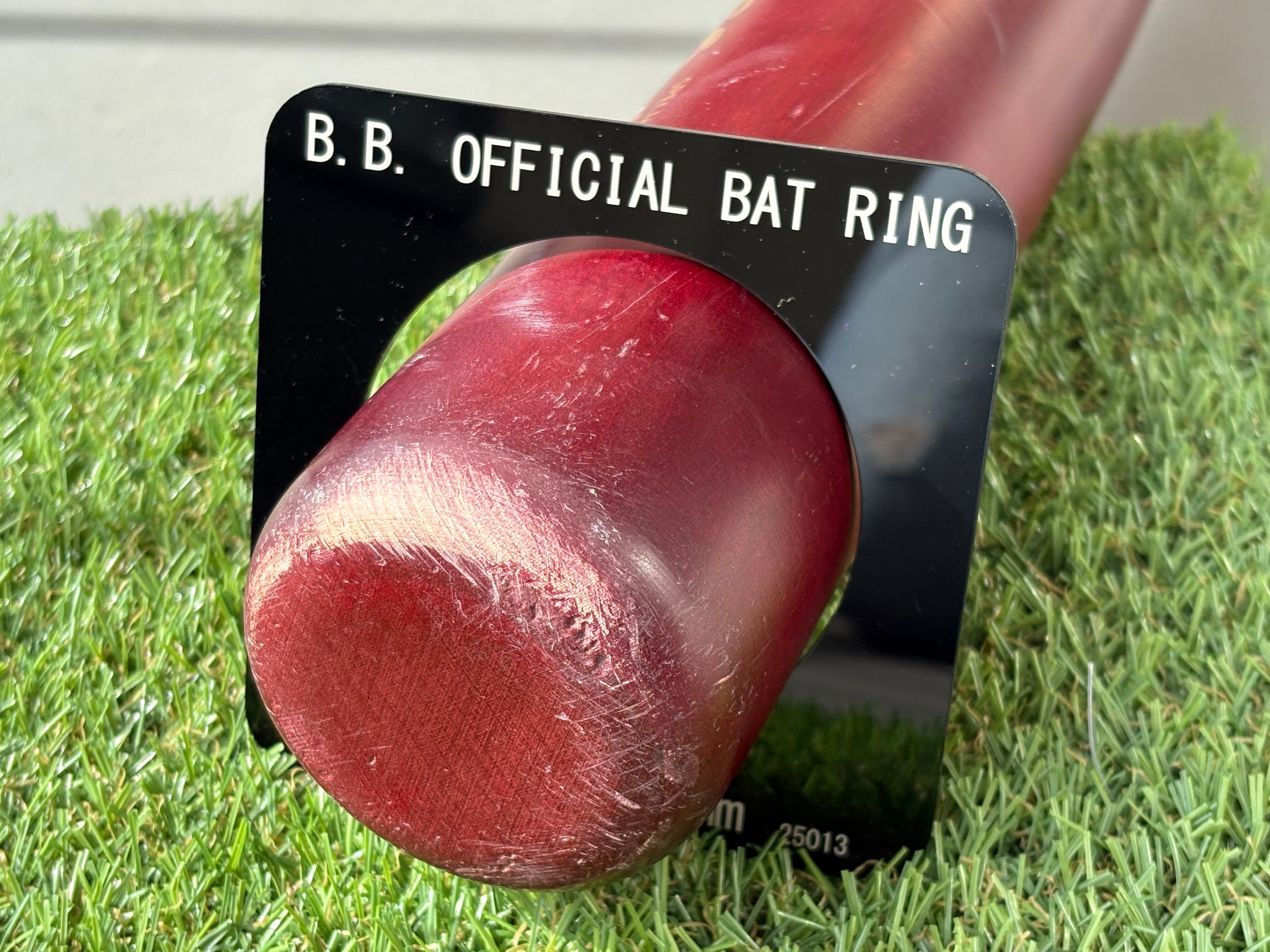 全日本グランドソフトボール連盟ではバットの直径は7cm以下と定められています。リングを通す事でバットがルール範囲内かどうかを確かめることができます
